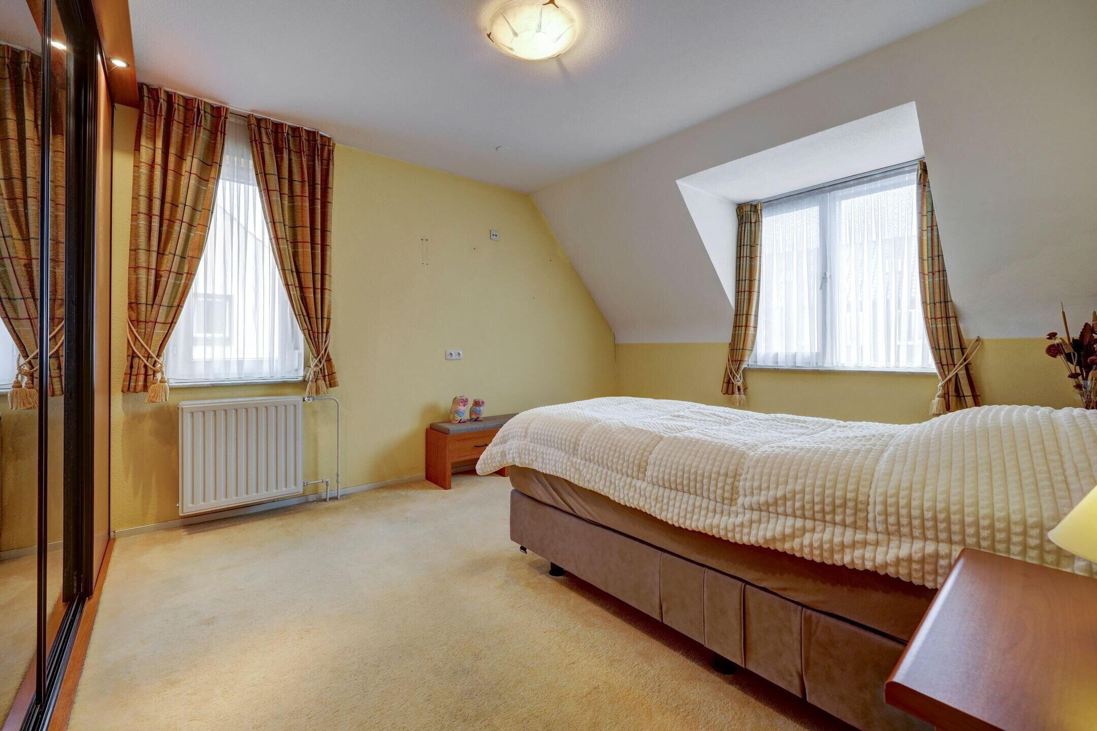 De grootste slaapkamer bevindt zich aan de voorzijde van de woning. Deze royale kamer is voorzien van een dakkapel met draairaam en een extra zijraam waardoor er volop licht binnenvalt. Beide ramen zijn uitgerust met een rolluik en een hor, ideaal voor comfort in elk seizoen. De ruimte is groot genoeg voor een royaal tweepersoonsbed en aanvullende meubels. Daarnaast beschikt de kamer over een praktische inbouwkast met vier schuifdeuren waarvan twee met spiegels. Hierdoor heb je meer dan voldoende opbergruimte voor kleding en andere spullen terwijl de spiegels de kamer optisch nog groter maken. Aan de achterzijde van de woning liggen nog twee slaapkamers. Beide kamers zijn prettig van formaat en daardoor uitstekend geschikt als kinderkamer, logeerkamer of thuiswerkplek. Ze zijn voorzien van een draairaam dat zorgt voor natuurlijke ventilatie en voldoende lichtinval.