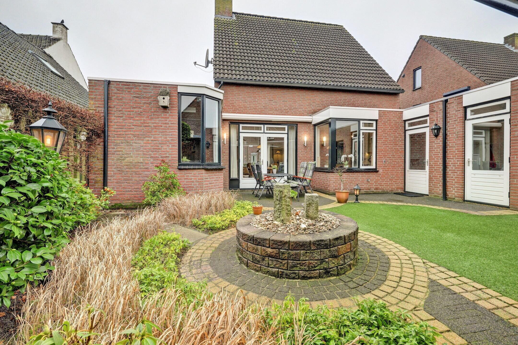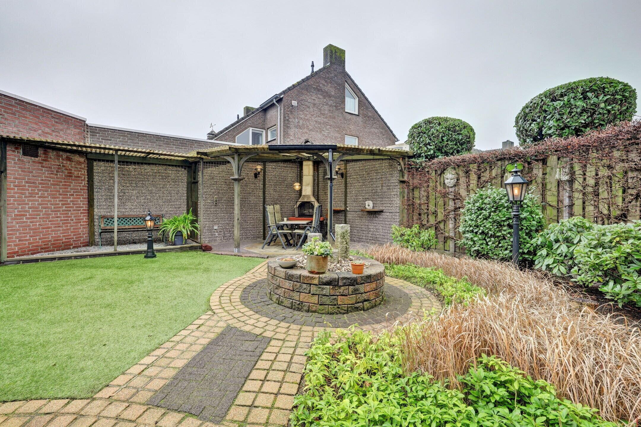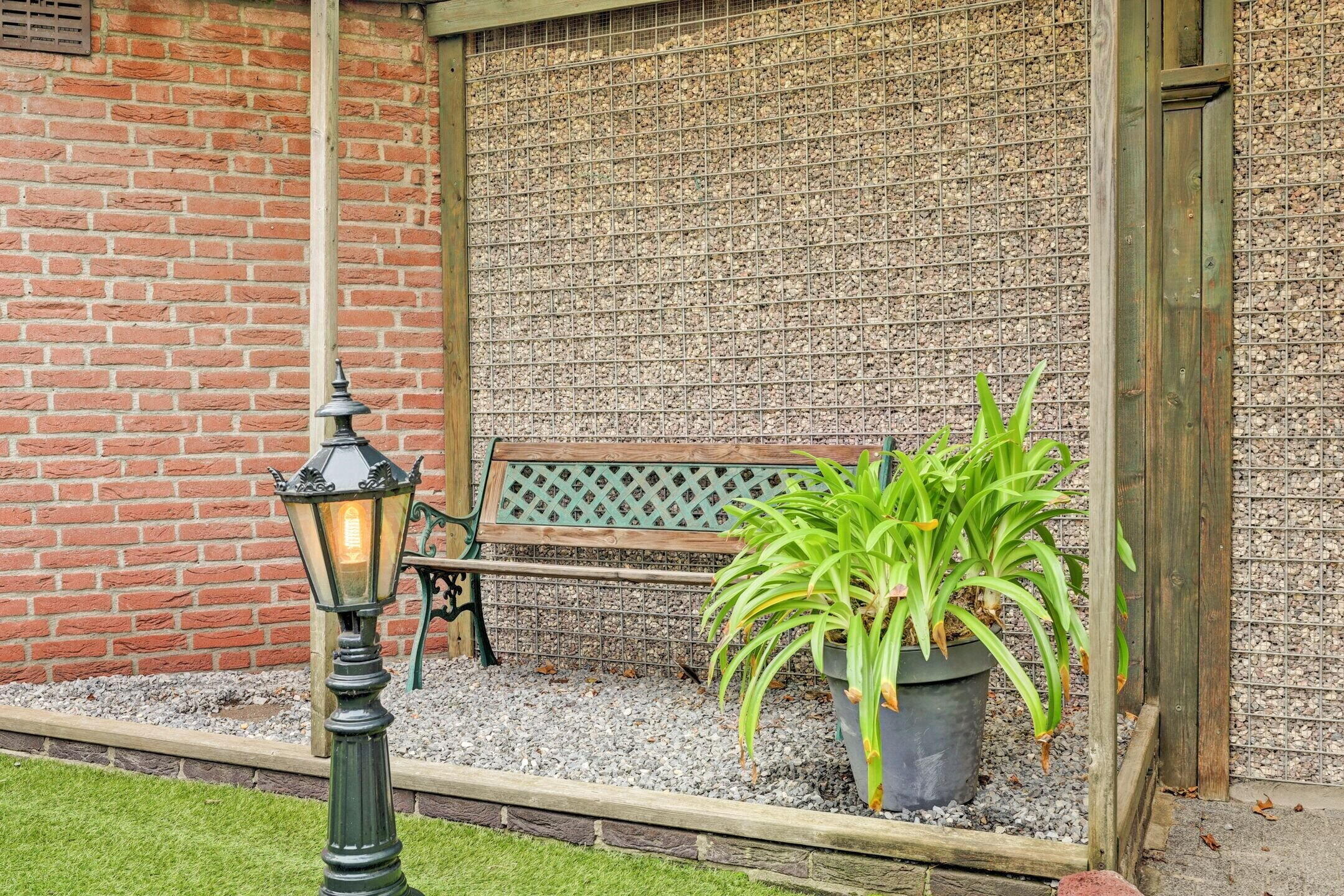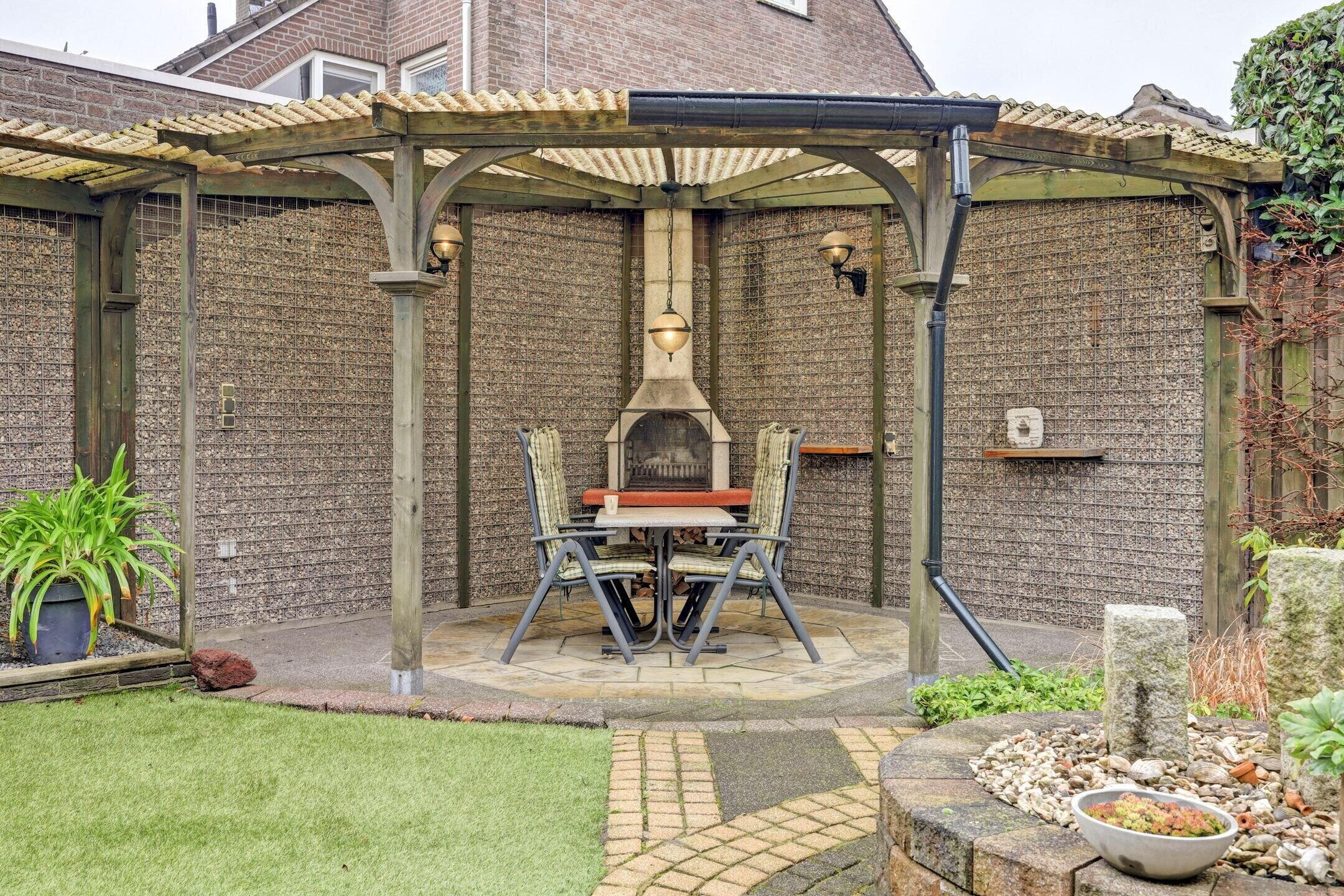 De achtertuin is knus, verzorgd en verrassend compleet ingericht. Direct achter de woning ligt een fijn terras waar je heerlijk kunt zitten. Met het uitschuifbare zonnescherm creëer je in een handomdraai een overdekte plek zodat je zowel van de zon als van de schaduw kunt genieten. Achterin de tuin bevindt zich een tweede, overdekt terras met een stenen barbecue. Dit is dé perfecte plek voor gezellige etentjes en lange zomeravonden met familie en vrienden. Hier zit je beschut en sfeervol, ongeacht het weer. De tuin is netjes aangelegd en onderhoudsvriendelijk ingericht met kunstgras en verzorgde borders. Dit zorgt voor een groene uitstraling zonder dat je veel tijd kwijt bent aan onderhoud. Een waterornament zorgt voor een speelse afwisseling en extra sfeer in de tuin. Om deze weer volledig werkend te maken dient er wel een nieuwe pomp op aangesloten te worden.