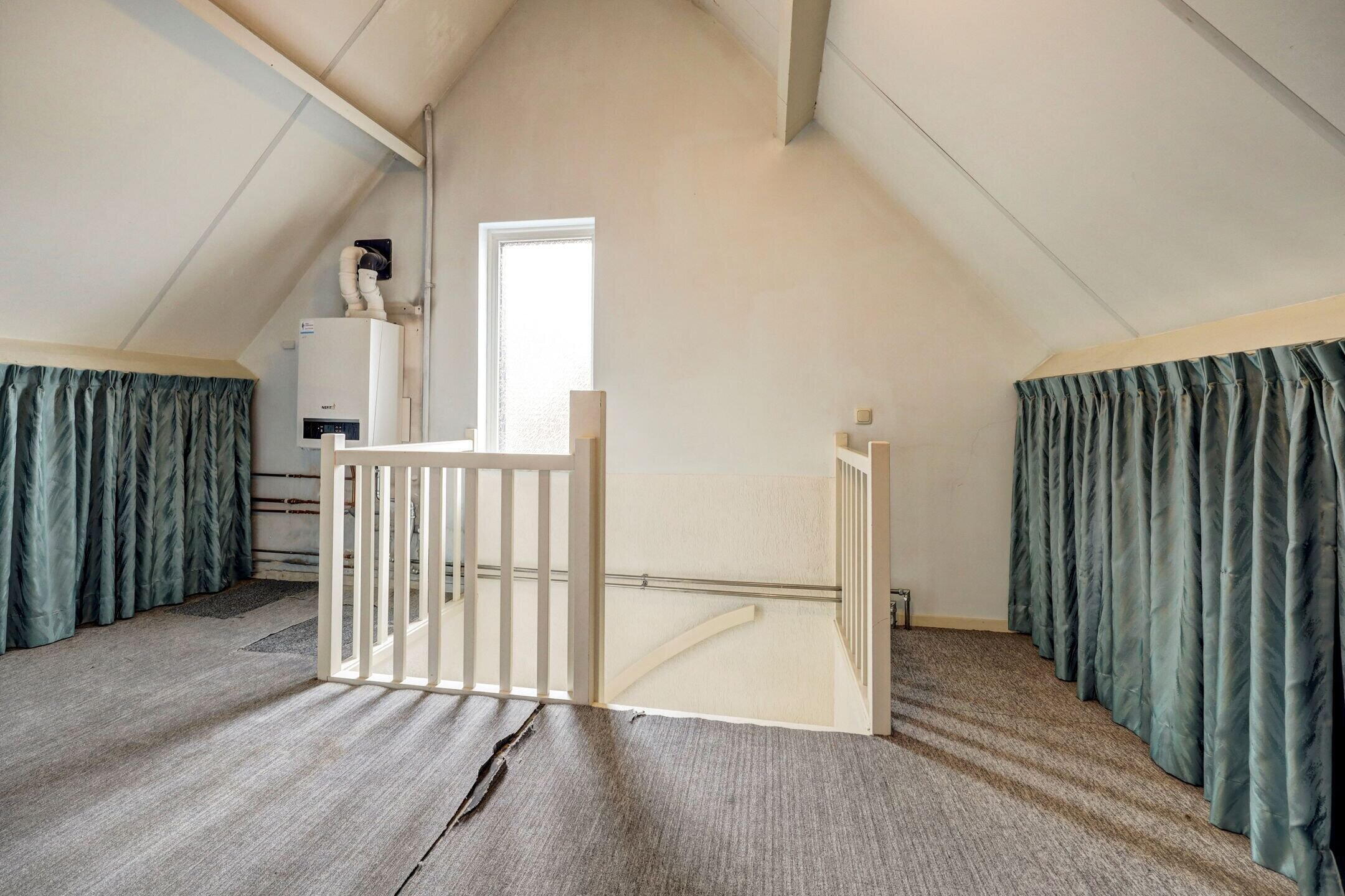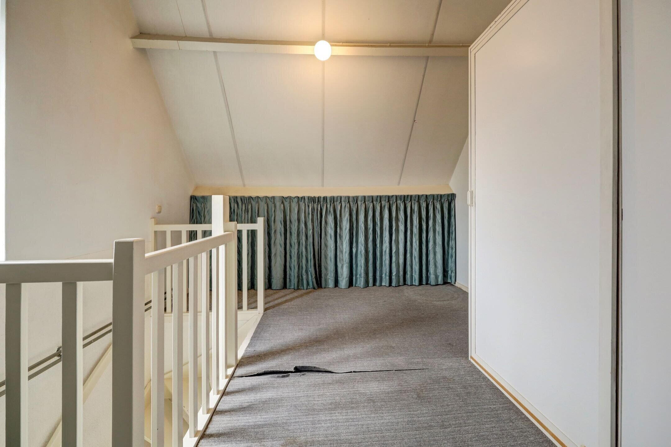 Via een vaste trap bereik je de zolderverdieping. Boven kom je eerst uit op een ruime overloop die volop bergruimte biedt. Er is een grote opbergkast aanwezig en onder het schuine dak kun je achter de gordijntjes verrassend veel spullen netjes uit het zicht opbergen. Ideaal voor koffers, seizoensspullen of archief. Ook hier profiteer je van prettig daglicht dankzij het vaste raam met figuurglas. Dit zorgt voor een mooie lichtinval zonder dat je last hebt van inkijk waardoor de ruimte licht en aangenaam aanvoelt. Op de overloop hangt tevens de Nefit cv-ketel (2023), netjes geplaatst en goed bereikbaar voor onderhoud.