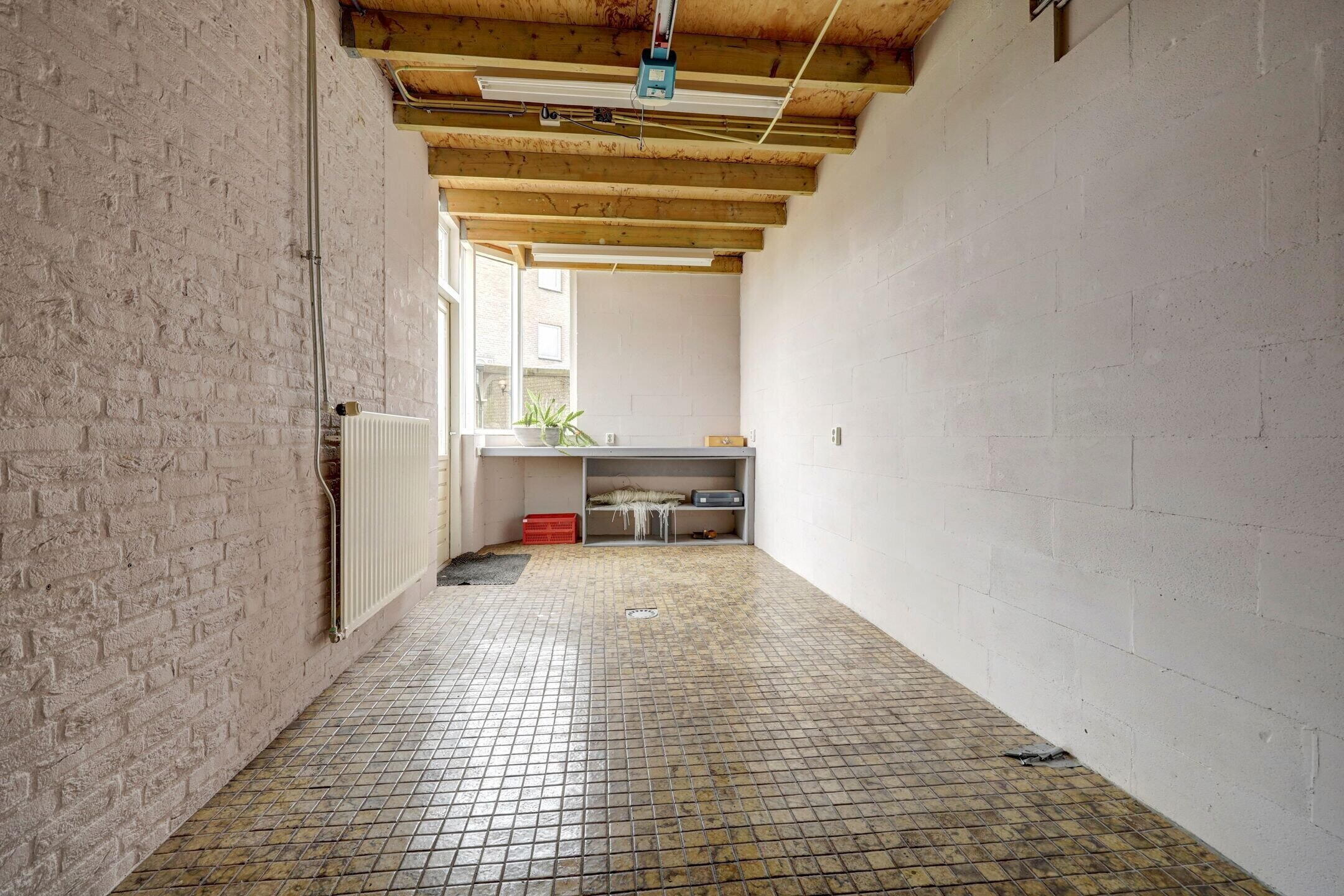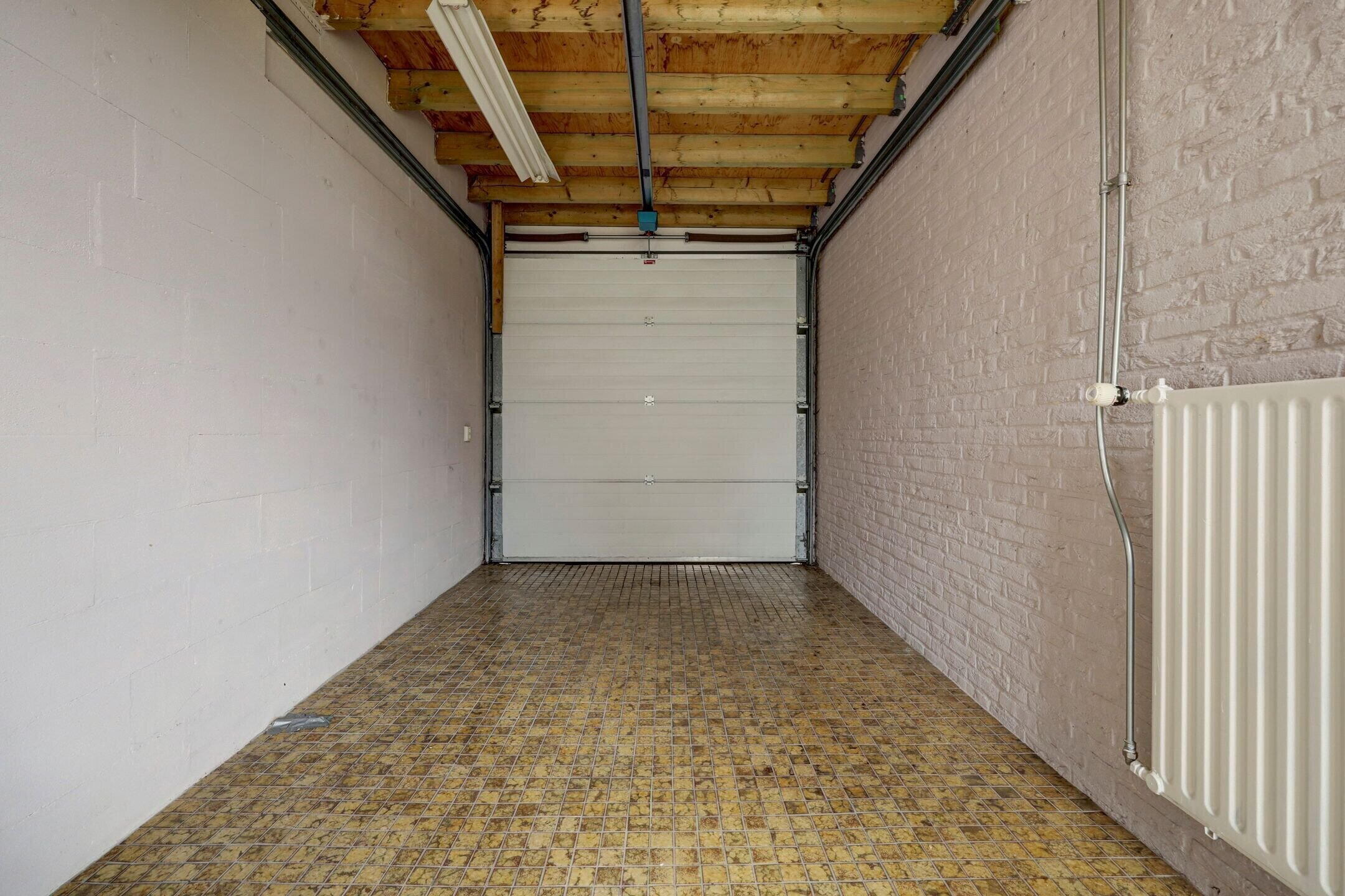 Aan de rechterzijde van de tuin heb je toegang tot de garage. Via de elektrisch te bedienen sectionaalpoort kun je hier een auto binnen plaatsen of je parkeert op de oprit voor de garage. De garage is ruim opgezet en biedt volop mogelijkheden voor het inrichten van een werkplaats. De vloer is betegeld en voorzien van een afvoerputje wat extra praktisch is. Dankzij de aanwezige ramen heb je bovendien prettig zicht op de tuin en valt er voldoende daglicht naar binnen.