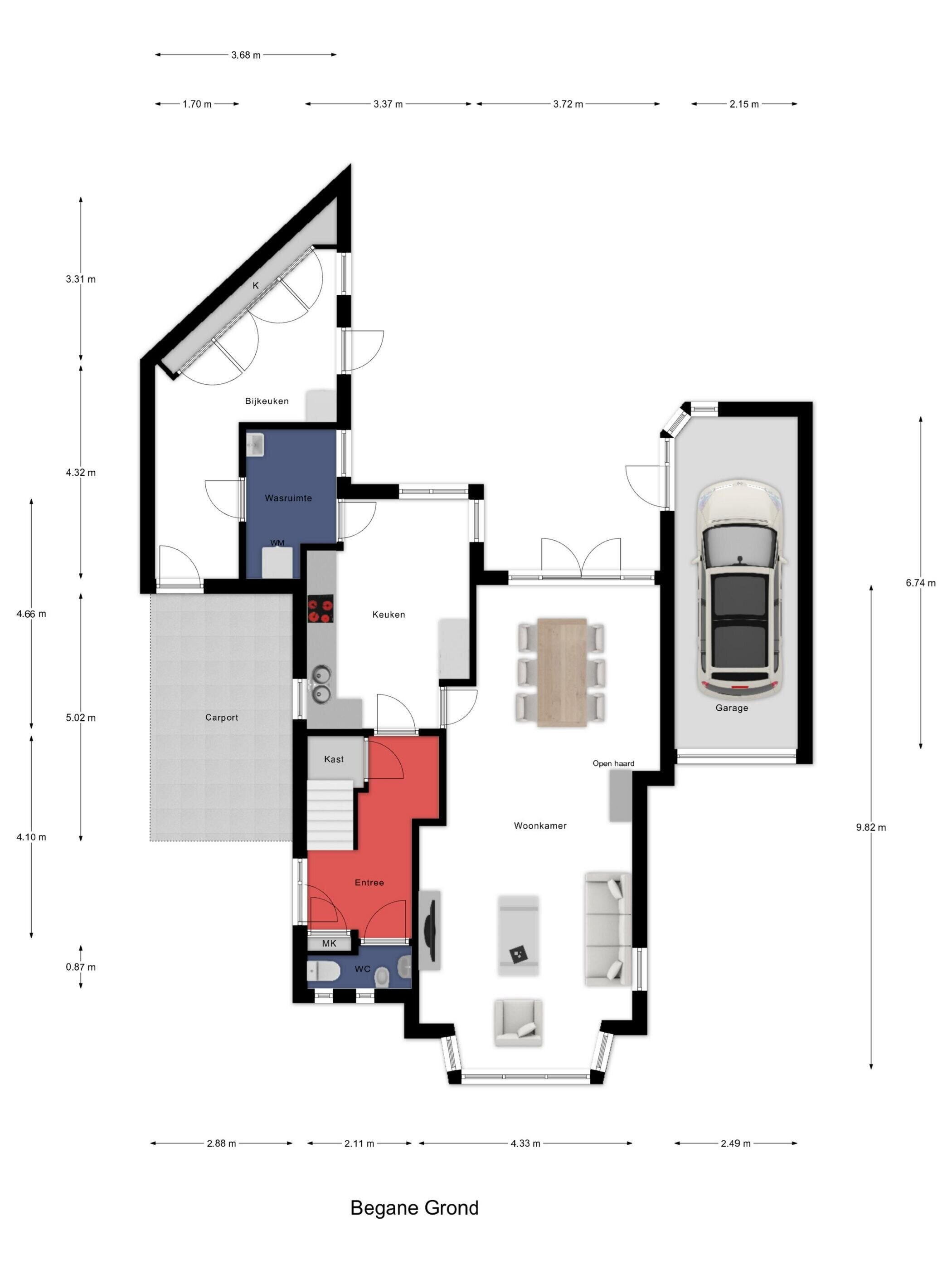 - 68 m² (9,00 meter diep en 7,50 meter breed)