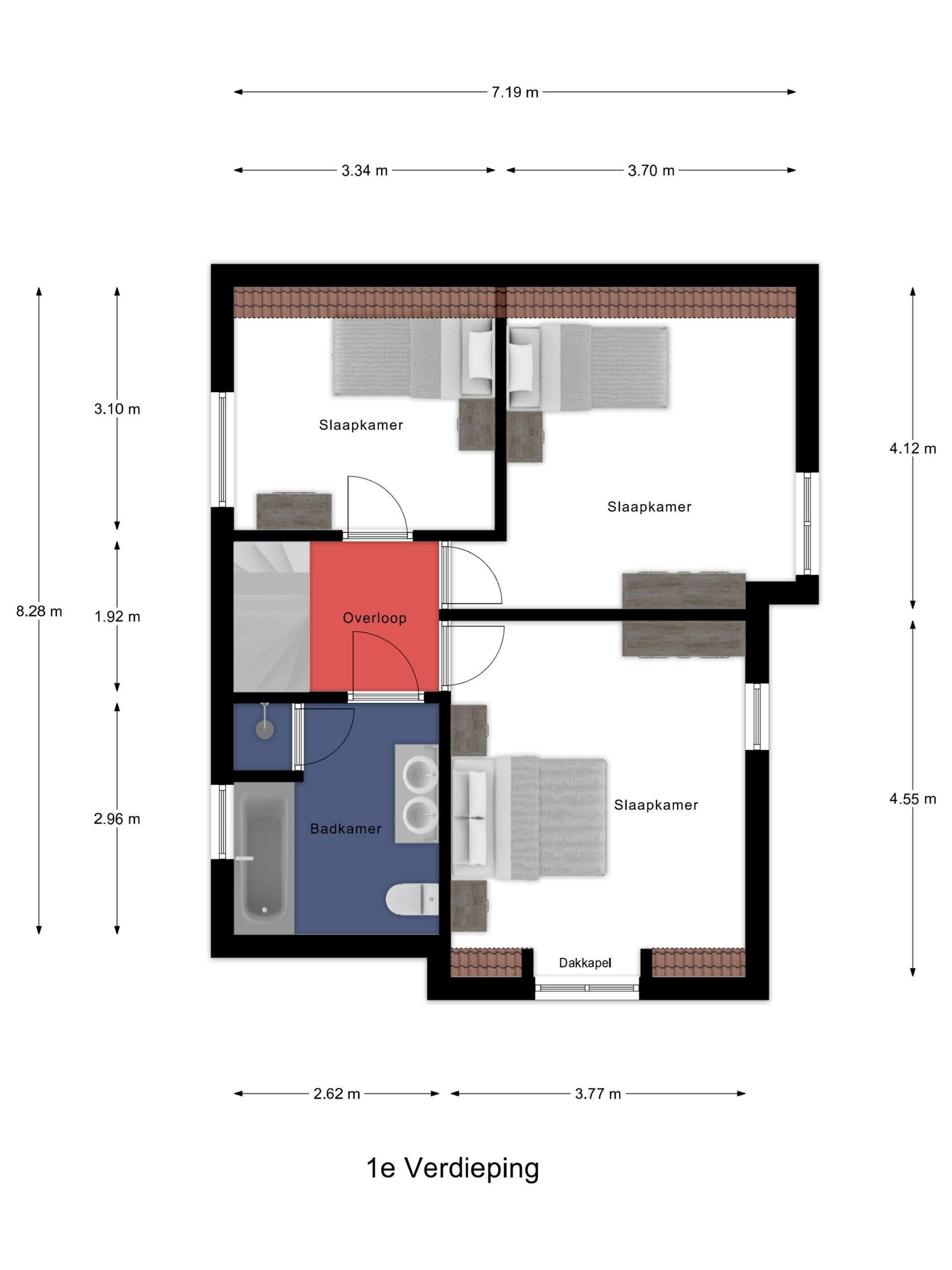 Op de eerste verdieping kom je uit op een ruime en lichte overloop. Dankzij het raam met figuurglas profiteer je hier van prettig daglicht terwijl inkijk van buitenaf wordt voorkomen. Op de trap, de overloop en in alle slaapkamers ligt vloerbedekking wat zorgt voor een warme uitstraling en zacht comfort.